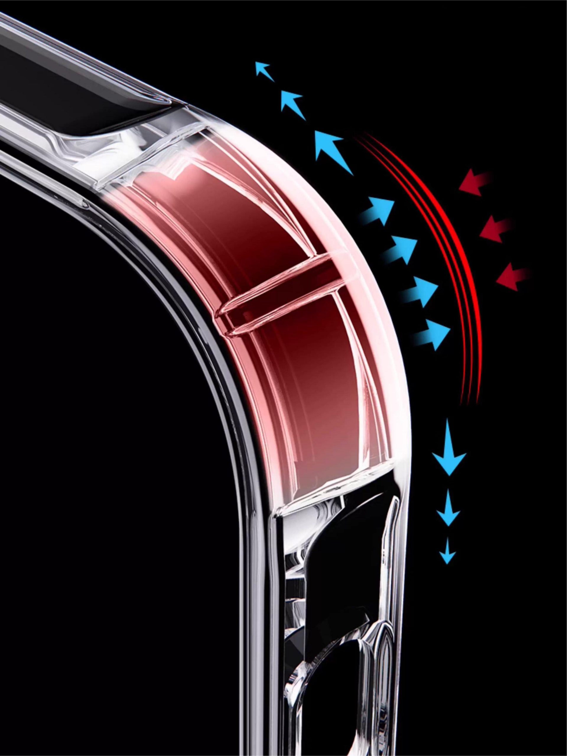Reinforced air cushion bumpers on all four corners absorb impact and reduce shock from accidental drops.