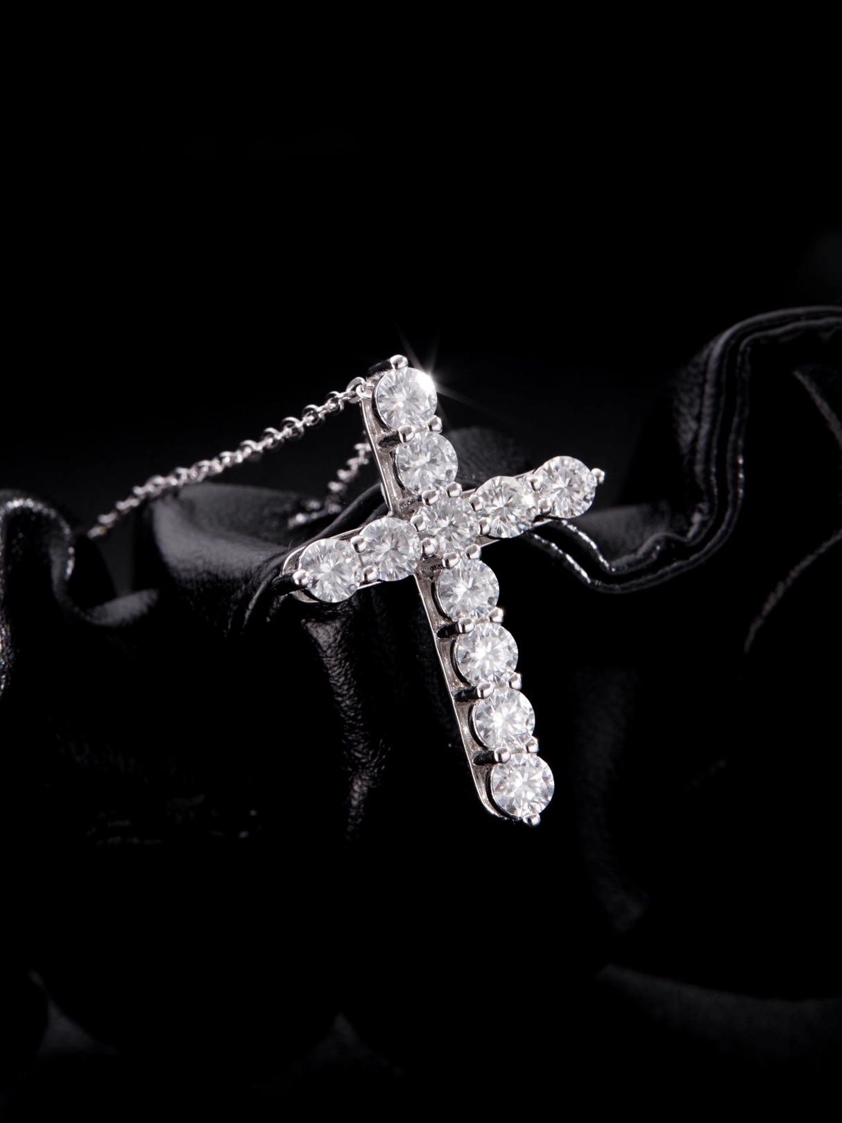 Premium Material: Crafted from high-quality platinum and set with brilliant moissanite stones, this cross necklace delivers exceptional shine, durability, and a luxurious look.